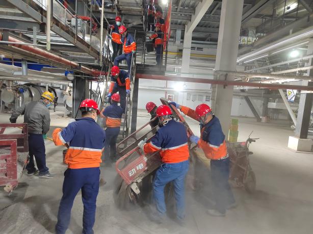 當(dāng)天9時,56名黨員、積極分子及共青團(tuán)員穿戴好勞保用品,準(zhǔn)備好勞動工具,在化工熱電公司黨支部支委班子成員帶頭下,大家自領(lǐng)任務(wù),分工明確,協(xié)作有序。活動現(xiàn)場,大家汗流浹背,臉上沾滿了灰土,但是為按時按量完成保供任務(wù),大家克服天氣炎熱等不利因素,一桶一桶的將底料送入爐膛,用“接力賽”的方式將鍋爐房點(diǎn)亮。