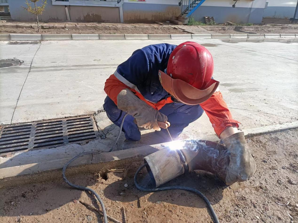 污水處理廠生化組合池排污泵管道短接焊接