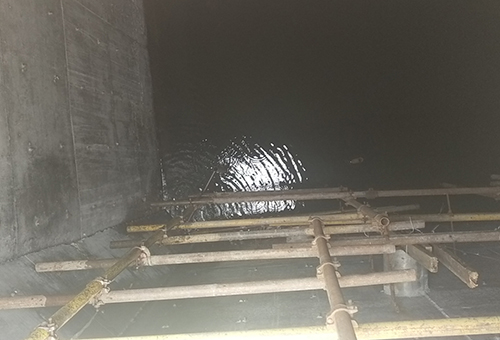 閉水試驗是池體施工質量總體檢驗的必要環(huán)節(jié)之一。為加快推進項目建設進度,石投集團博石環(huán)保有限公司與施工單位中鐵二十一局積極溝通,明確施工方案,確定實驗日期,要求中鐵二十一局嚴格按照施工計劃執(zhí)行,并指定專人負責,從管道施工、池底平整、腳手架拆除、廢料清除、預埋管口及進出口的臨時封堵、輸水管道的敷設等環(huán)節(jié)層層把控,督促中鐵二十一局做好閉水試驗前的各項準備工作。在閉水實驗過程中,博石環(huán)保公司要求中鐵二十一局隨時對池體進行外觀檢查,觀測底板、池壁是否漏水,發(fā)現(xiàn)滲漏點要做好標記并及時處理解決。經(jīng)過連續(xù)三天的持續(xù)觀察和記錄后,若無滲漏才可逐步排水。